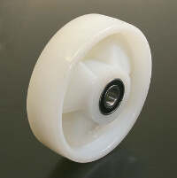 The UE H-2708-AC310-N steer wheel assembly is an aftermarket replacement designed for H2708, H2900, and H3082 pallet jacks. It includes one steer wheel with a pre-installed bearing for easy installation. The solid nylon construction provides high durability, resistance to wear, and smooth maneuverability. This steering wheel supports directional control and stability, ensuring efficient movement and precise steering in material handling applications.