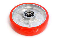 The WW PM-5-A-HD steer wheel assembly is designed for Dayton Grainger 3KR84 pallet jacks. It includes one steer wheel with a pre-installed bearing for easy installation. The wheel's tread is made from ultra-poly material, which provides durability and smooth movement. The hub is constructed from aluminum, offering strength while keeping the wheel lightweight. This combination ensures reliable performance for heavy-duty pallet jack operations.